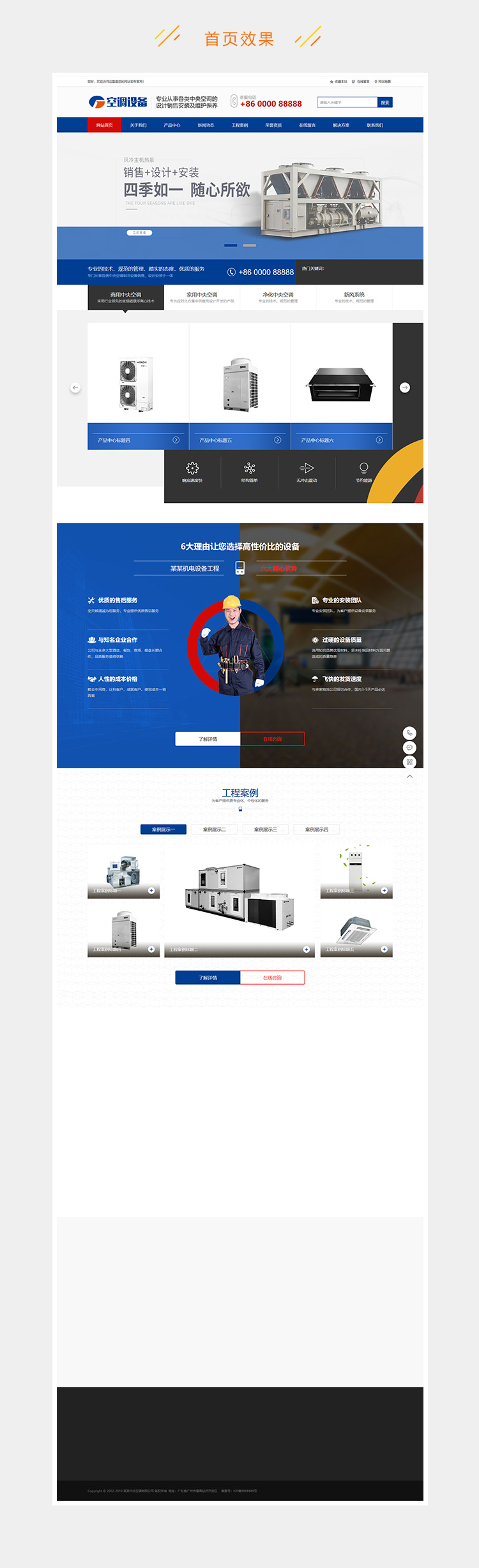 这是一套适合中央空调设备系统公司的一套HTML5模板,本模板基于织梦程序二次开发,高端大气,效果酷炫;采用HTML5+CSS3设计,交互性很强。整站代码精简,加速响应,优化很多细节,对搜索引擎(SEO)友好,使该模板更实用而美观。
